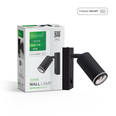 Zidna svjetiljka Green Tech, grlo GU10, IP20, crna boja
